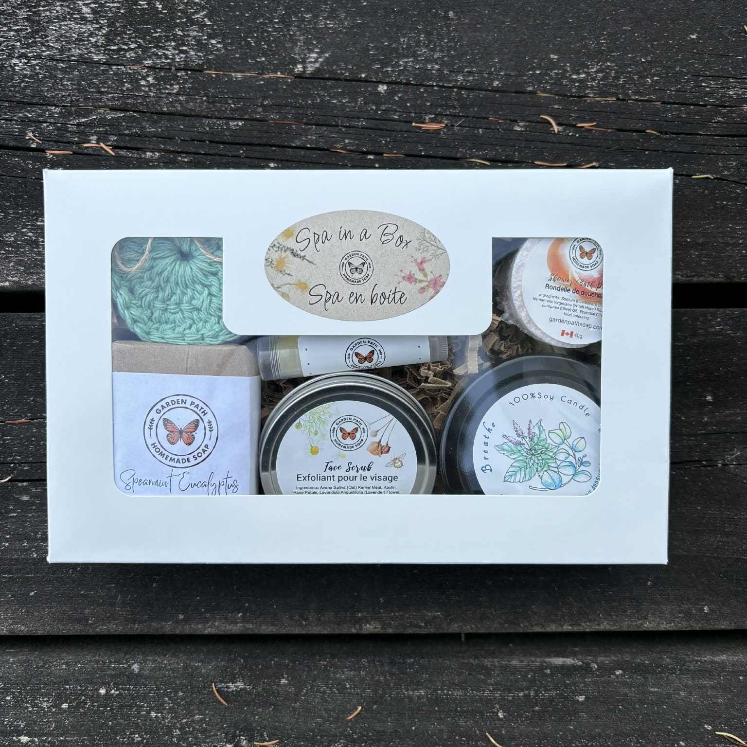 A unique, simple and original gift. Spa in a Box is a perfect bundle for anyone you love. It contains 6 homemade, natural products: lip balm, small soy candle (varies), facial scrub, regular bar of soap (varies), face scrubbies, and a bath/shower puck. You will recognize the "new idea" but now there is no glass jar to worry about!